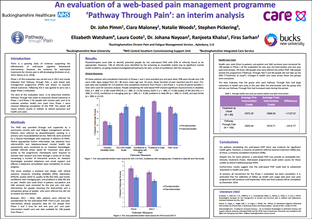 A study conducted by Buckinghamshire Healthcare NHS Trust finds significant healthcare cost reductions for the online pain-management programme